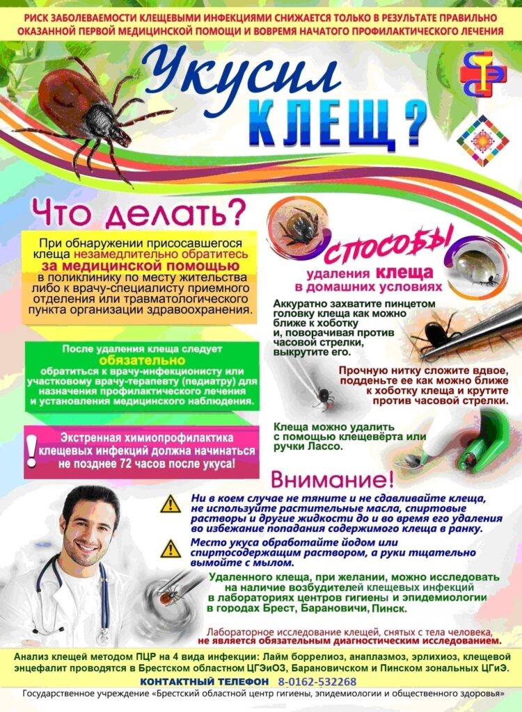 После удаления паразита необходимо обратиться в поликлинику по месту жительства к инфекционисту, терапевту или педиатру для назначения профилактического лечения и организации наблюдения (в течение месяца необходимо следить за кожей в месте укуса, температурой, регионарными лимфатическими узлами и изменением общего состояния).