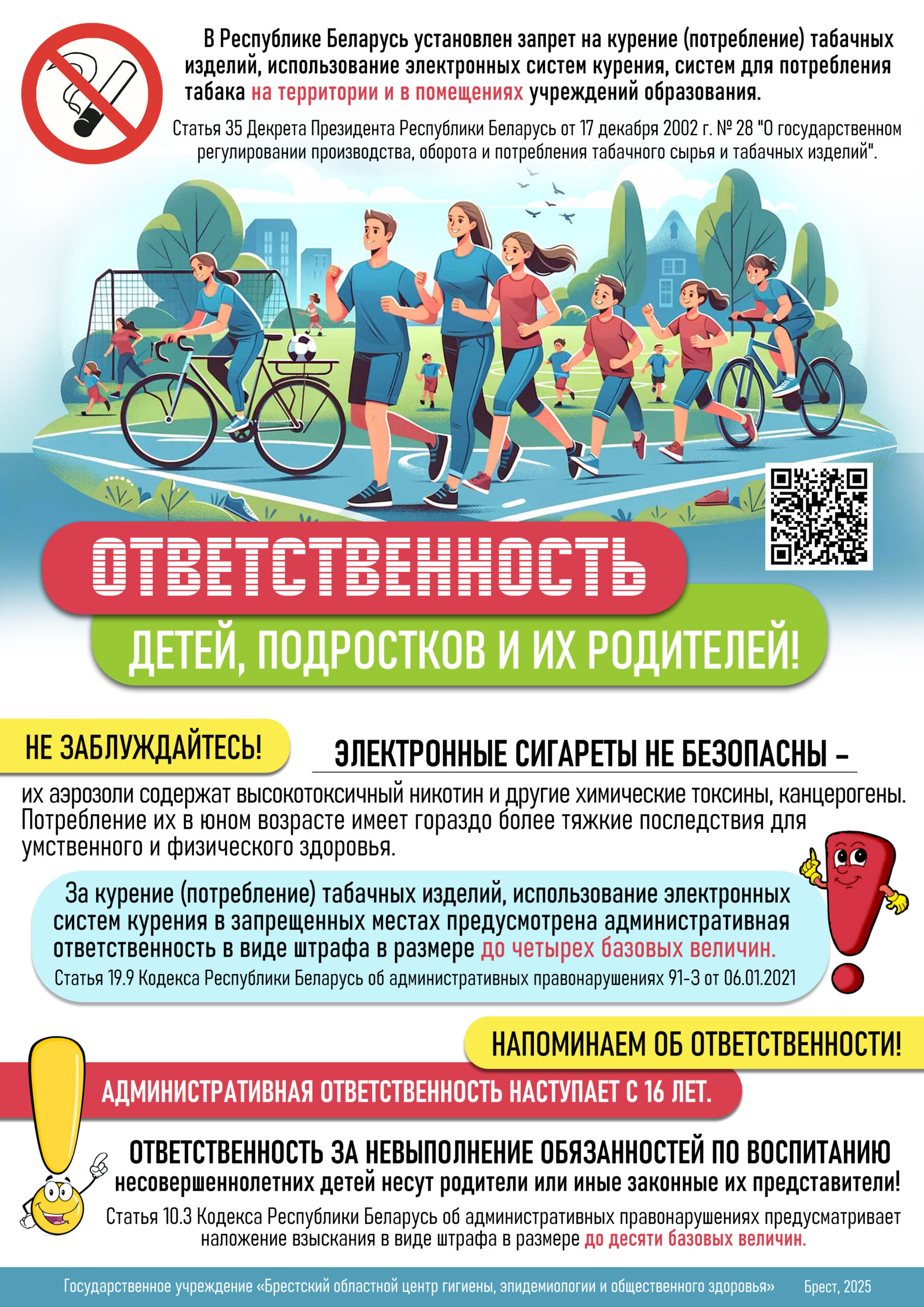 В соответствии с Декретом Президента Республики Беларусь от 17.12.2002 №28 «О государственном регулировании производства, оборота и потребления табачного сырья и табачных изделий» определены места, где курение (потребление) табачных изделий, использование электронных систем курения, систем для потребления табака запрещено.