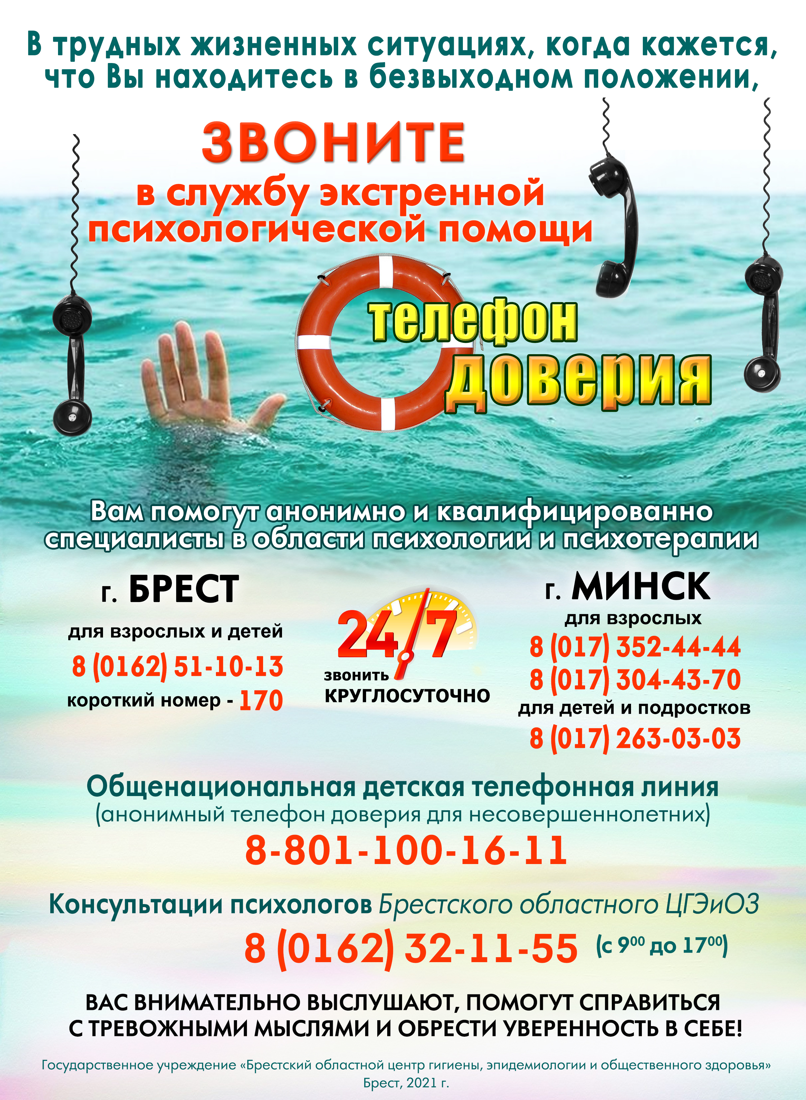 Экстренную психологическую помощь можно получить круглосуточно, бесплатно по номеру телефона 133, в том числе на анонимной основе.